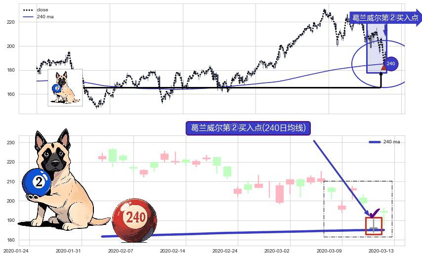 ⚀ 2020-03-12-日显现 葛兰威尔均线 240日均线 第②买入点 上升趋势的中继信号,后市看涨,买进信号