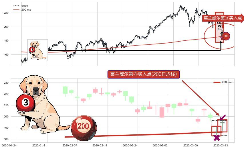 ⚀ 2020-03-13-日显现 葛兰威尔均线 200日均线 第③买入点 上升趋势的中继信号,后市看涨,买进信号
