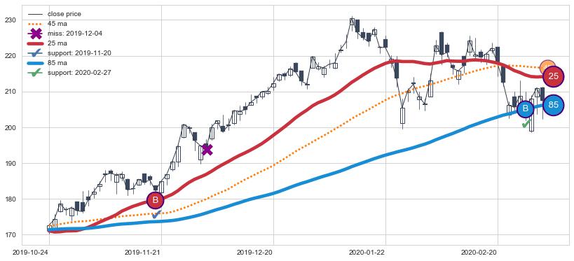⚃ 在破位点附近ma依然上升趋势比较明显,平稳迹象是在突破后一段时间后出现,信号【可信度低】