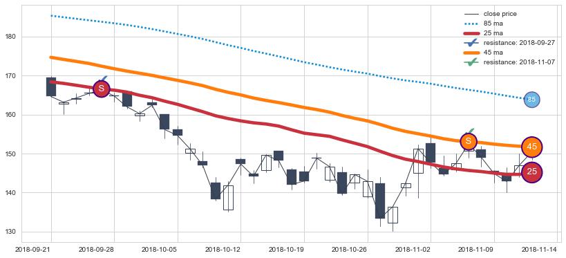 ➣ 历史趋势中共发现10处重要支撑阻力位,其中关键支撑位8处, 关键阻力位2处