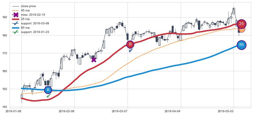 ⚄ 价格在均线获取支撑后再次向上反弹了【极短】距离, 第②买入点 支撑效果【等待验证】
