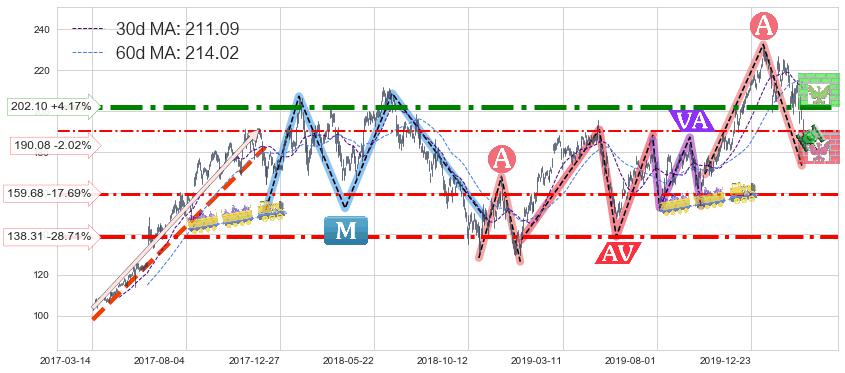 ♘ 支撑价格位190.08,可信任强度45.91%,距离最后交易2020-03-13形成的收盘价格194.00相差 -2.02%