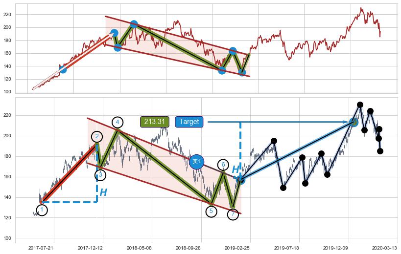 ➣ 最小中继整理涨幅→𝐇: 56.32 (𝐇旗杆的长度:旗杆起点→顶点)