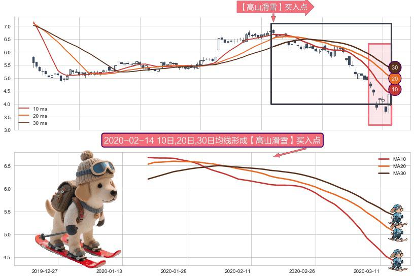 形态多维评估: ⚀ 2020-01-17日-2020-03-13日显现 10日-20日-30日均线 【高山滑雪】买入点 看多信号,后市看涨,买入