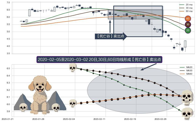 形态多维评估: ⚀ 2020-02-06-日至2020-03-02-日显现 20日-30日-60日均线 【死亡谷】卖出点 看空信号,后市看跌,卖出
