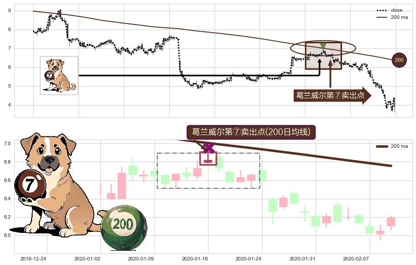 形态多维评估: ⚀ 2020-01-16-日显现 葛兰威尔均线 200日均线 第⑦卖出点 下降趋势的中继信号,后市看跌,卖出信号