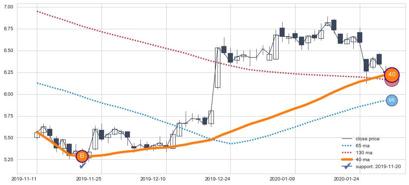 上涨趋势2019-11-11-2020-01-30,均线40确认关键支撑1处