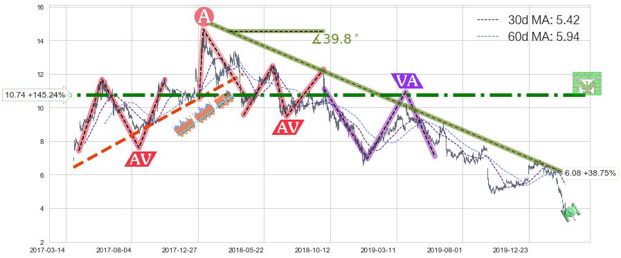 ♘ 阻力价格位10.74,可信任强度99.00%,距离最后交易2020-03-13形成的收盘价格4.38相差 +145.24%