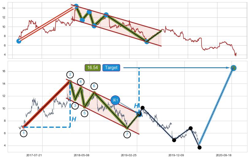 ➣ 最小中继整理涨幅→𝐇: 7.45 (𝐇旗杆的长度:旗杆起点→顶点)