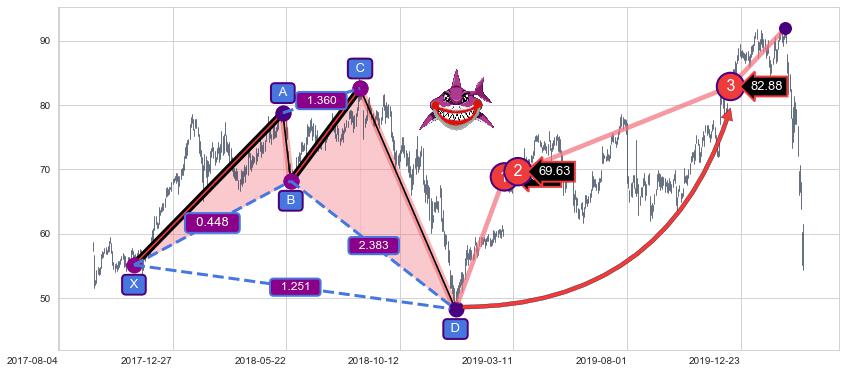 ➣ 已达成看涨【鲨鱼】形态全部的预期目标