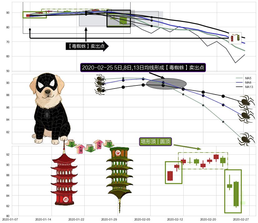 | 2 🅚:下跌身怀六甲 ➕ 🎢:【毒蜘蛛】卖出点均线组合卖出点信号形成后,猜想三条均线周期内的交易者都看空后市,持续下跌 ☞ 看空信号 ⇥ 【均线】交织【🅚线】⇥ 综合量化分数: 49 | > |