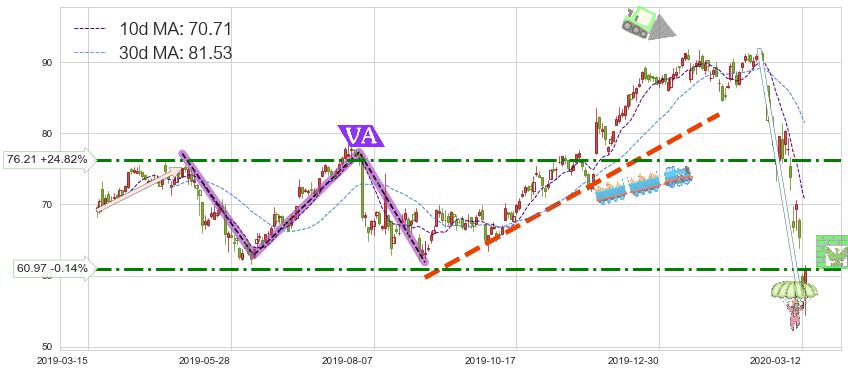 ♘ 阻力价格位76.21,可信任强度64.87%,距离最后交易2020-03-13形成的收盘价格61.06相差 +24.82%