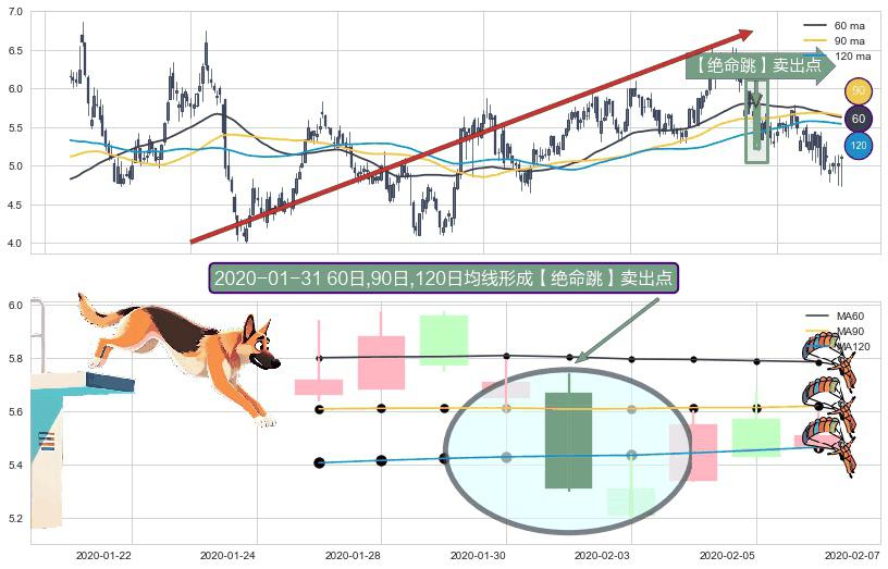 ⚀ 2020-01-31日显现 60日-90日-120日均线 【绝命跳】卖出点 看空信号,后市看跌,卖出