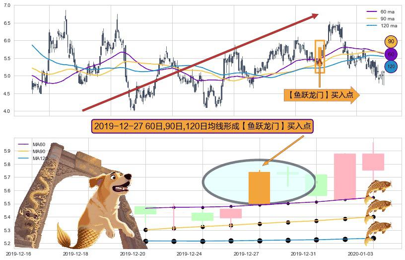 ⚀ 2019-12-27日显现 60日-90日-120日均线 【鱼跃龙门】买入点 看多信号,后市看涨,买入
