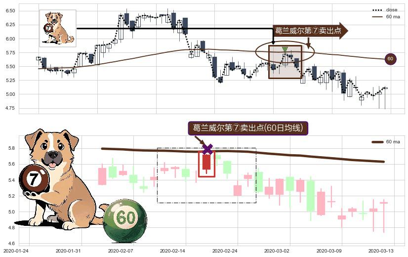 ⚀ 2020-02-19-日显现 葛兰威尔均线 60日均线 第⑦卖出点 下降趋势的中继信号,后市看跌,卖出信号