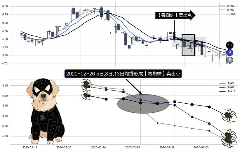⚀ 2020-02-26日显现 5日-8日-13日均线 【毒蜘蛛】卖出点 看空信号,后市看跌,卖出
