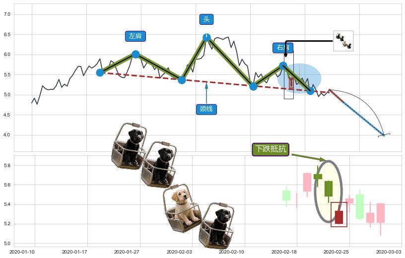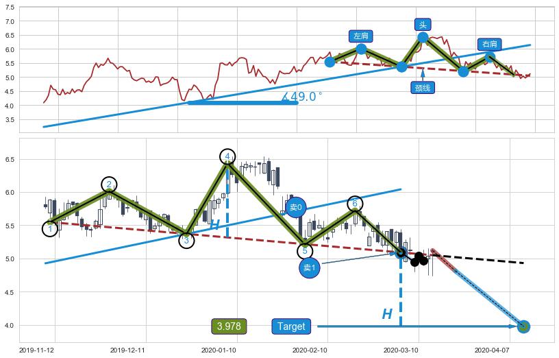 ➢ 高点影线(2020-01-28: 5.97 )→回踩→第二根k线高点(2020-01-27: 5.94 )