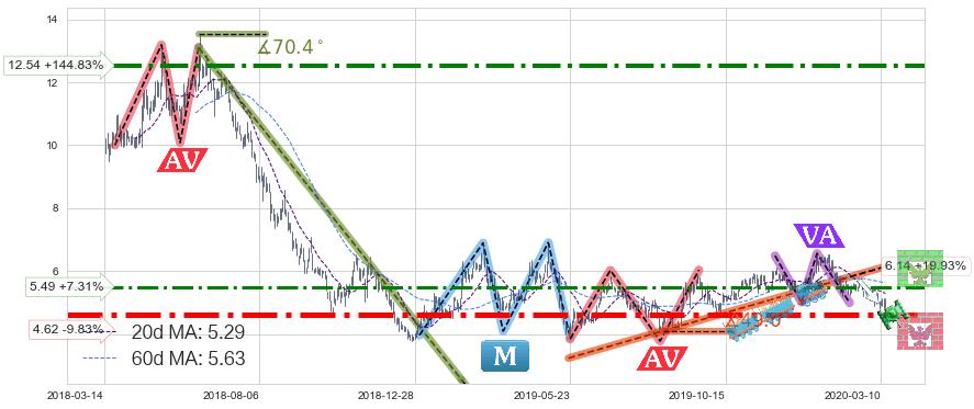 ➣ 【仅预测突破】最后价格:5.12与预测突破价格:4.88→【空间中等】后续最小【反转】第一目标价格→(2020-04-23: 3.673 )