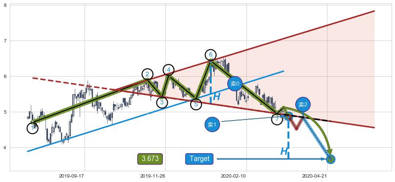 ➣ AI预测: 假定反转启动后, 第❶目标位置(2020-06-23, 5.76)