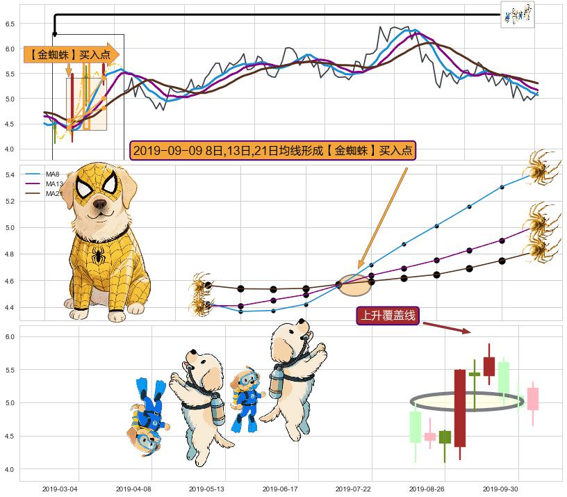 | 2 🅚:黄昏之星(夜星) ➕ 🎢:【毒蜘蛛】卖出点均线组合卖出点信号形成后,猜想三条均线周期内的交易者都看空后市,持续下跌 ☞ 看空信号 ⇥ 【均线】交织【🅚线】⇥ 综合量化分数: 41 | > |