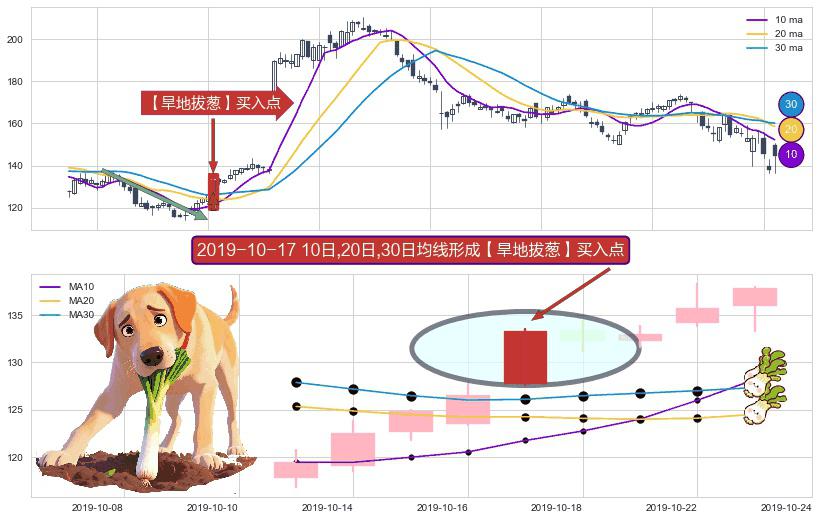形态多维评估: ⚀ 2019-10-17日显现 10日-20日-30日均线 【旱地拔葱】买入点 看多信号,后市看涨,买入