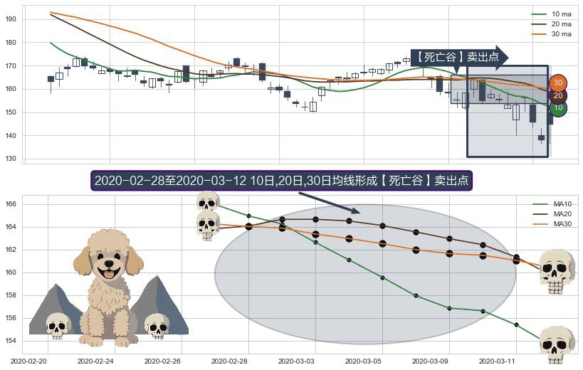 形态多维评估: ⚀ 2020-03-02-日至2020-03-12-日显现 10日-20日-30日均线 【死亡谷】卖出点 看空信号,后市看跌,卖出