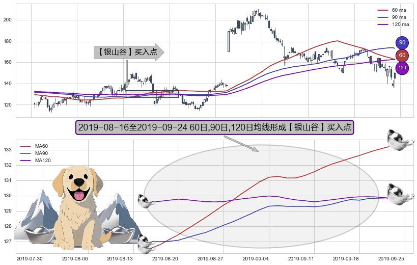 形态多维评估: ⚀ 2019-08-19-日至2019-09-24-日显现 60日-90日-120日均线 【银山谷】买入点 看多信号,后市看涨,买入