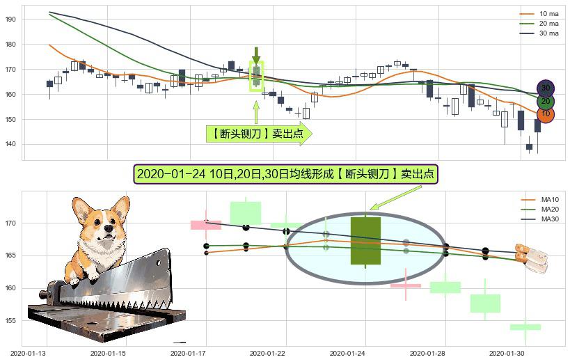 形态多维评估: ⚀ 2020-01-24日显现 10日-20日-30日均线 【断头铡刀】卖出点 看空信号,后市看跌,卖出
