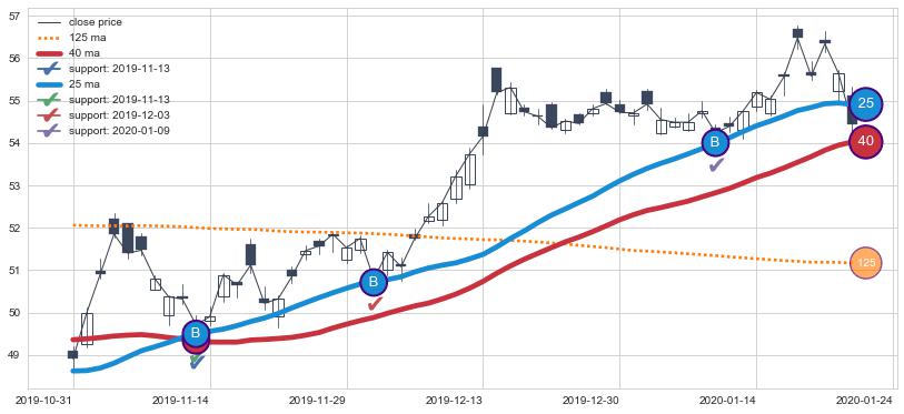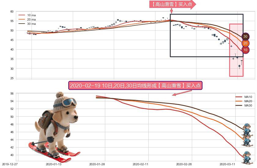 ⚀ 2020-01-24日-2020-03-13日显现 10日-20日-30日均线 【高山滑雪】买入点 看多信号,后市看涨,买入