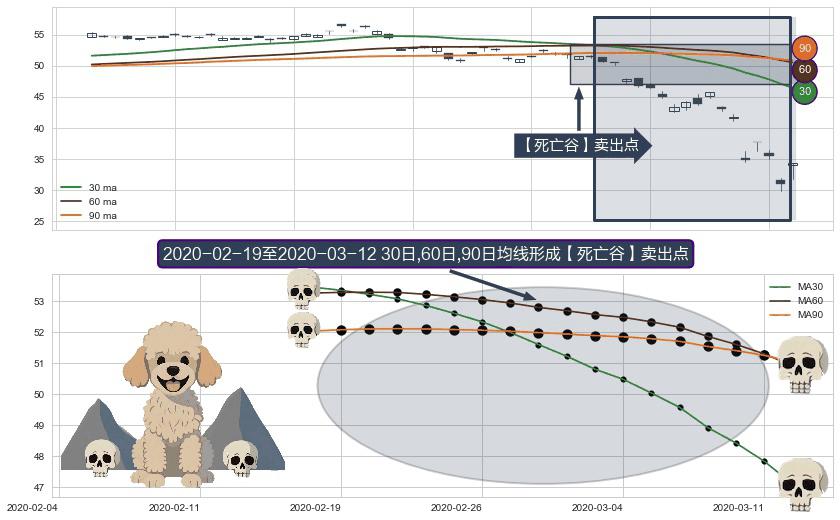 ⚀ 2020-02-20-日至2020-03-12-日显现 30日-60日-90日均线 【死亡谷】卖出点 看空信号,后市看跌,卖出
