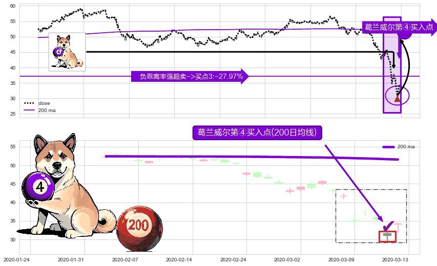 ⚀ 2020-03-12-日显现 葛兰威尔均线 200日均线 第④买入点 下降趋势均值回复的短线反弹信号,后市看涨,买进信号