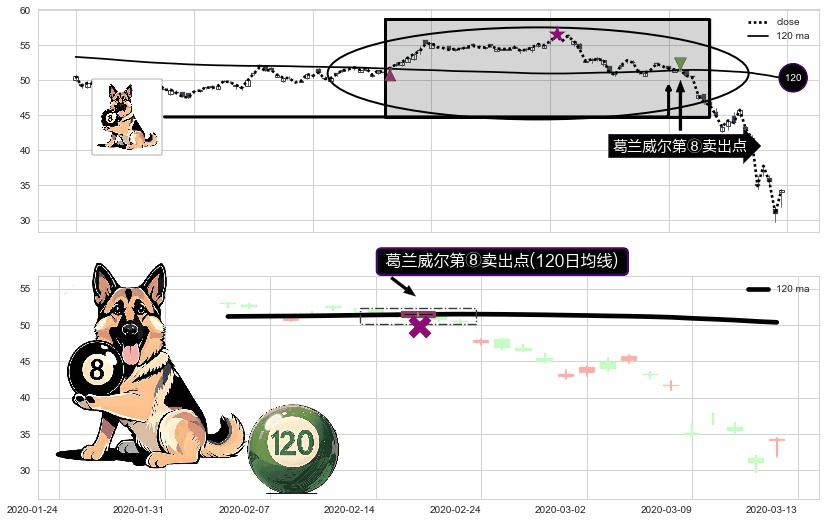⚀ 2020-02-19-日显现 葛兰威尔均线 120日均线 第⑧卖出点 下降趋势的中继信号,后市看跌,卖出信号