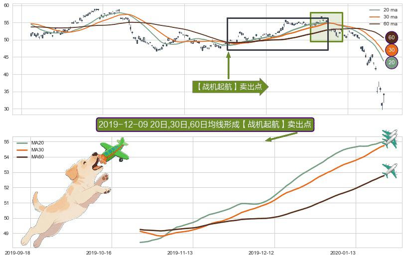 ⚀ 2019-10-25日-2020-01-23日显现 20日-30日-60日均线 【战机起航】卖出点 看空信号,后市看跌,卖出