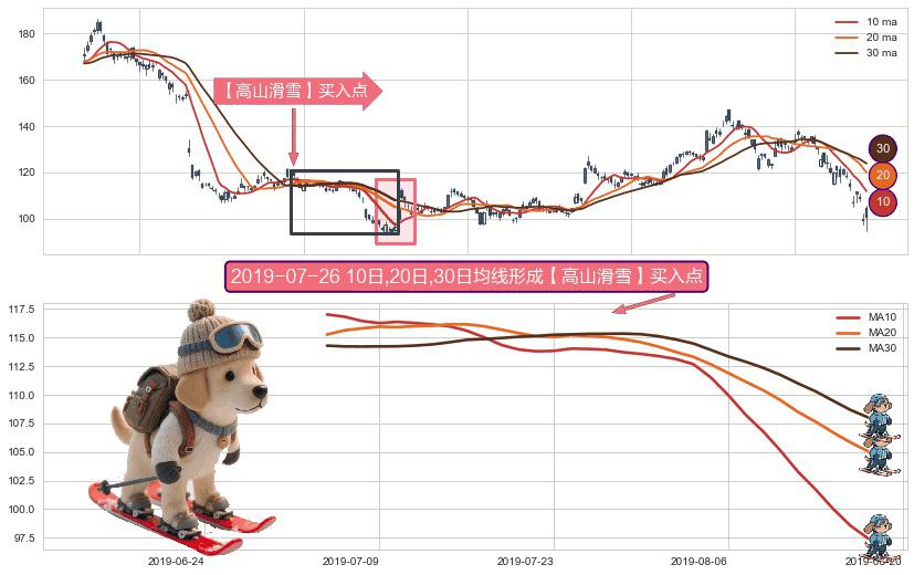 ⚀ 2019-07-03日-2019-08-16日显现 10日-20日-30日均线 【高山滑雪】买入点 看多信号,后市看涨,买入