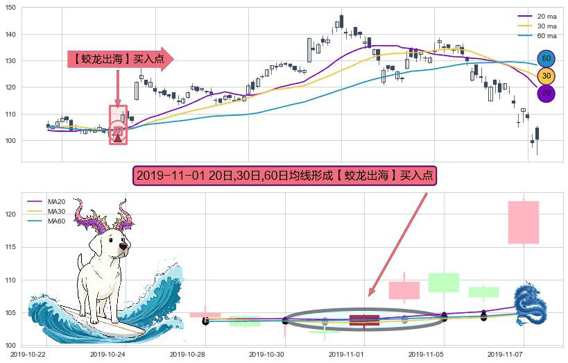 ⚀ 2019-11-01日显现 20日-30日-60日均线 【蛟龙出海】买入点 看多信号,后市看涨,买入