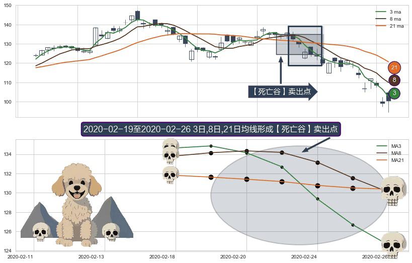 ⚀ 2020-02-20-日至2020-02-26-日显现 3日-8日-21日均线 【死亡谷】卖出点 看空信号,后市看跌,卖出