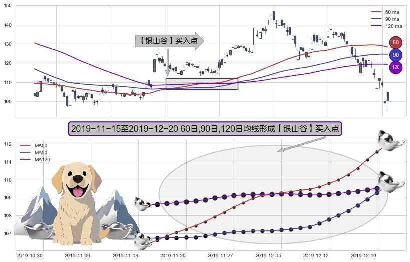 ⚀ 2019-11-18-日至2019-12-20-日显现 60日-90日-120日均线 【银山谷】买入点 看多信号,后市看涨,买入