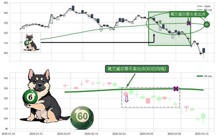 ⚀ 2020-02-24-日显现 葛兰威尔均线 60日均线 第⑥卖出点 走势反转见顶信号,后市看跌,卖出信号