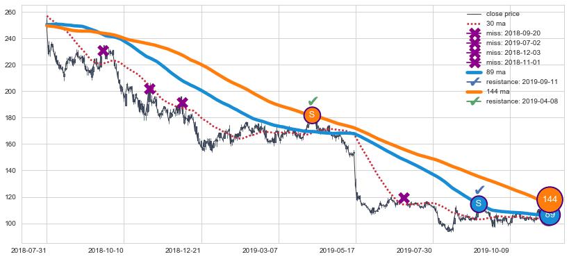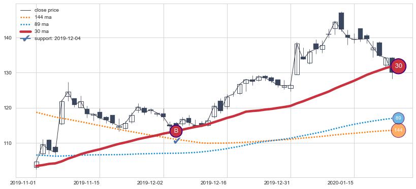 ⚃ 在破位点附近ma走势明显平稳迹象,稍后的走势中ma下垂迹象也出现,信号【可信度中等偏上】