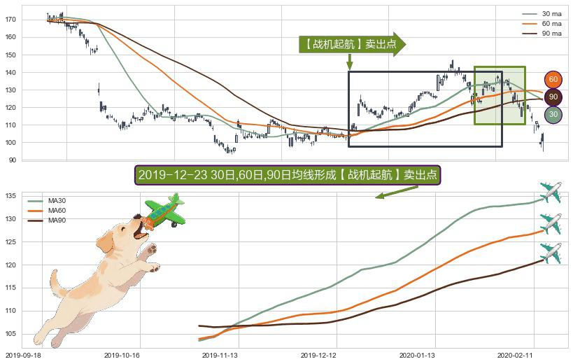 ⚀ 2019-11-01日-2020-02-13日显现 30日-60日-90日均线 【战机起航】卖出点 看空信号,后市看跌,卖出