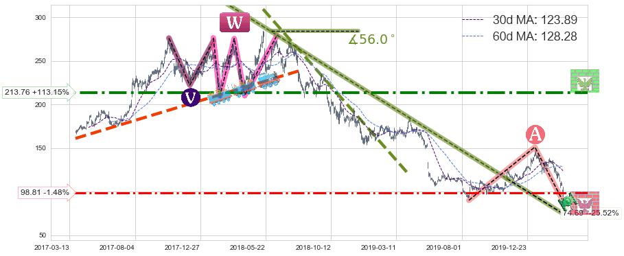 ♘ 阻力价格位213.76,可信任强度77.40%,距离最后交易2020-03-13形成的收盘价格100.29相差 +113.15%