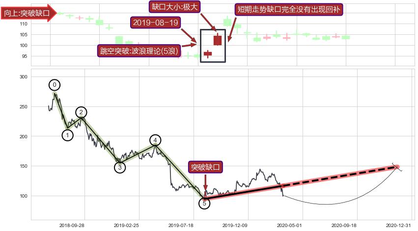 ➢ 跳空突破波浪理论(5浪)关键点后,后续非关键走势也无缺口回补迹象,突破缺口可信度提高