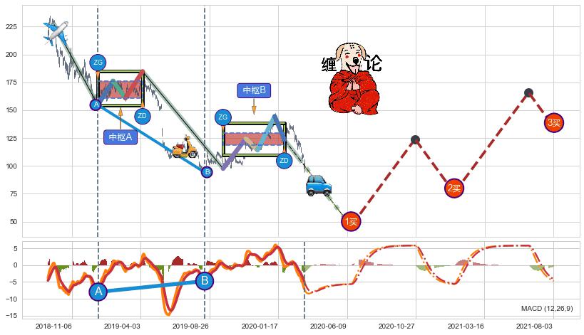 | 29 🅚:下降三部曲(降势三鹤) ➕ ☯️:缠论中枢点下降缠中枢B破位后距离1买距离较远,随后猜想后续持续下跌(趋势跟踪) ☞ 看空信号 ⇥ 【🅚线】交织【图形】⇥ 综合量化分数: 49 | > |