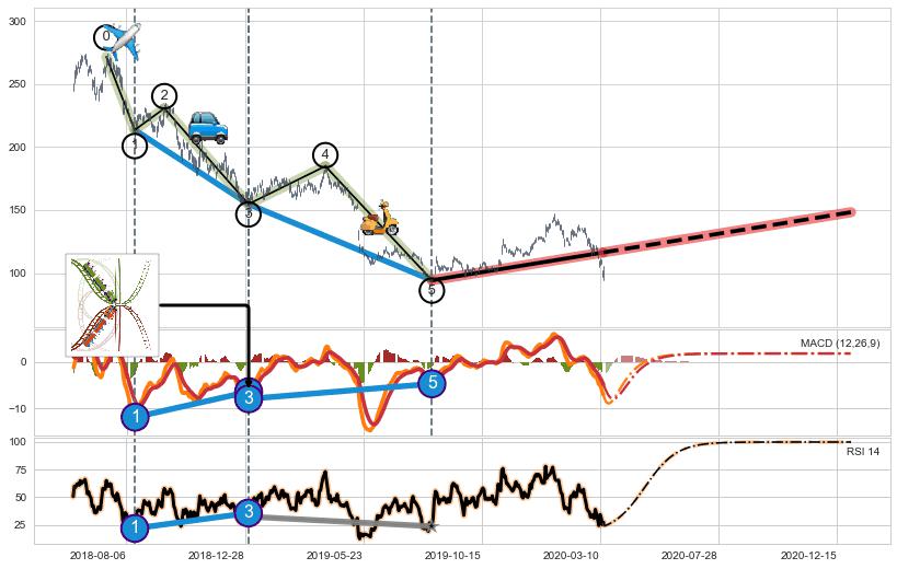 ➣ a,c调整浪MACD, RSI, KDJ走势都【未出现】背离,abc走势延续, 5浪反转概率增强