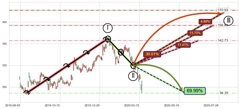 ➣ 循环浪继续向上【平均值】位置(2020-07-17, 156.83),匹配聚类样本比例45.66%, 可能性概率13.70%