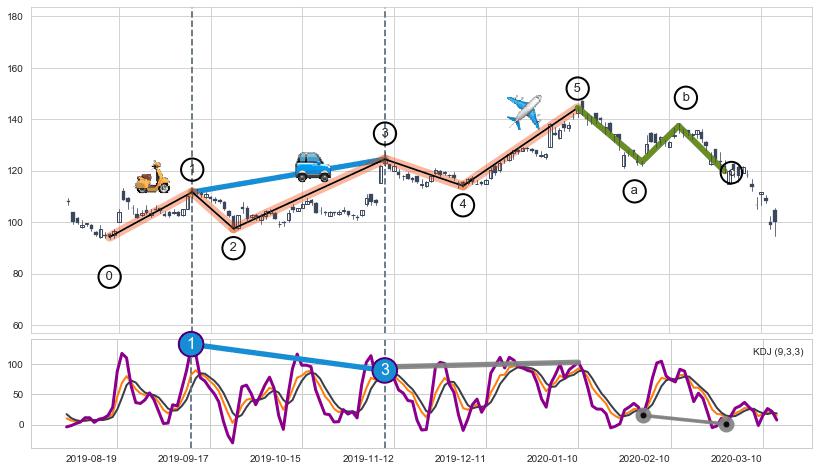 ➣ 1,3,5驱动浪KDJ走势未出现明显背离