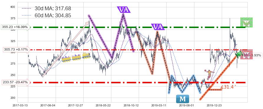 ♘ 支撑价格位305.73,可信任强度66.77%,距离最后交易2020-03-13形成的收盘价格305.21相差 +0.17%