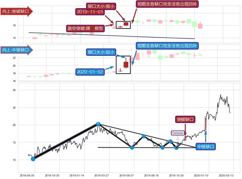 ➣ 中继缺口在突破缺口后再次向上跳空,趋势得到加固