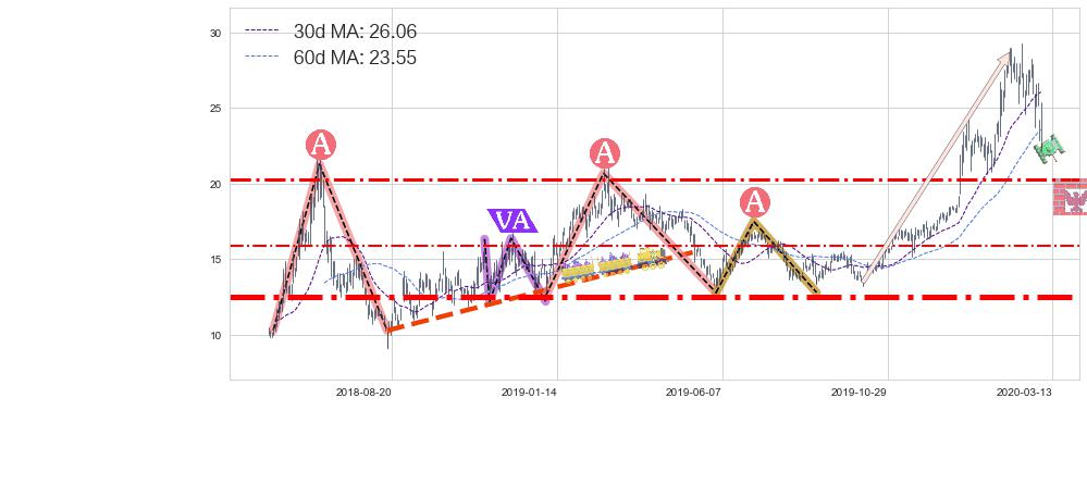 ♘ 支撑价格位20.25,可信任强度60.33%,距离最后交易2020-03-13形成的收盘价格23.37相差 -13.35%