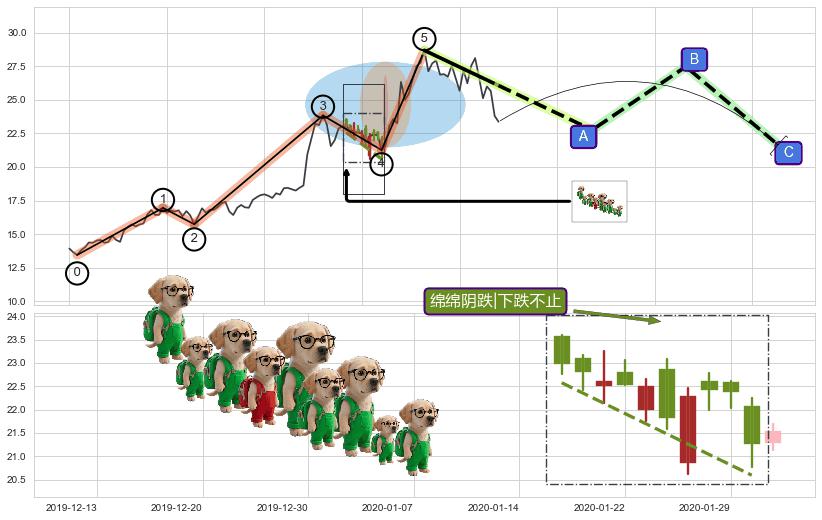 ➣ D点拟合预测价格22.04,距离最后交易收盘价格23.37相差 -5.69%